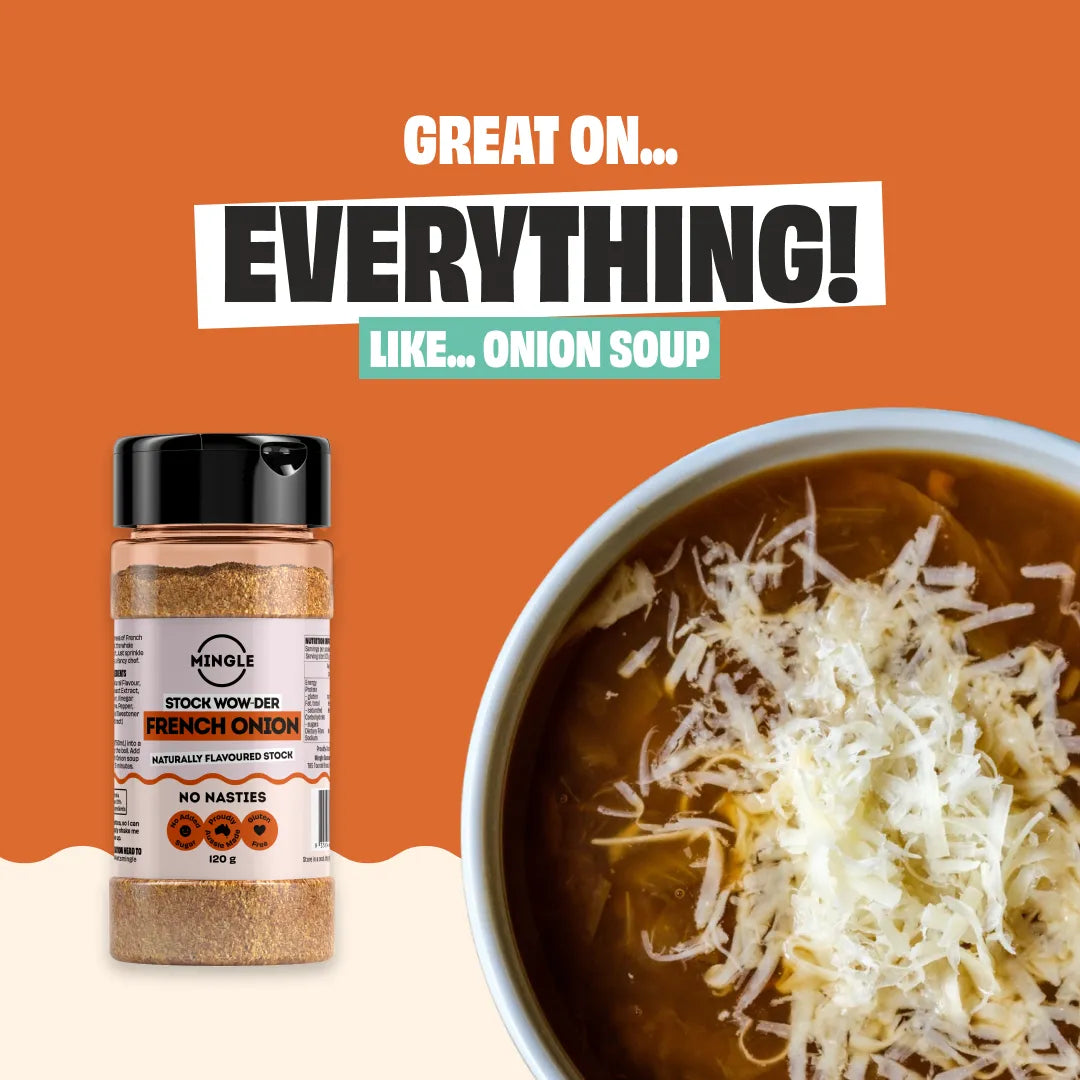 Onion (53%), Garlic, Natural Flavour, Australian Sea Salt, Yeast Extract, Coconut Milk Powder, Vinegar Powder, Chive, Thyme, Pepper, Thyme Extract, Natural Sweetener (Monk Fruit Extract).