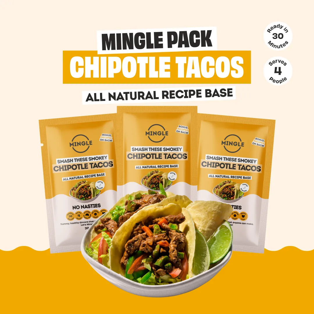 Mingle's Recipe Bases redefine healthy eating, offering delicious meals like tacos and curries in under 30 minutes. These gluten-free, plant-based, and lower-sodium blends are packed with all-natural spices, making healthy, mouth-watering meals incredibly easy.