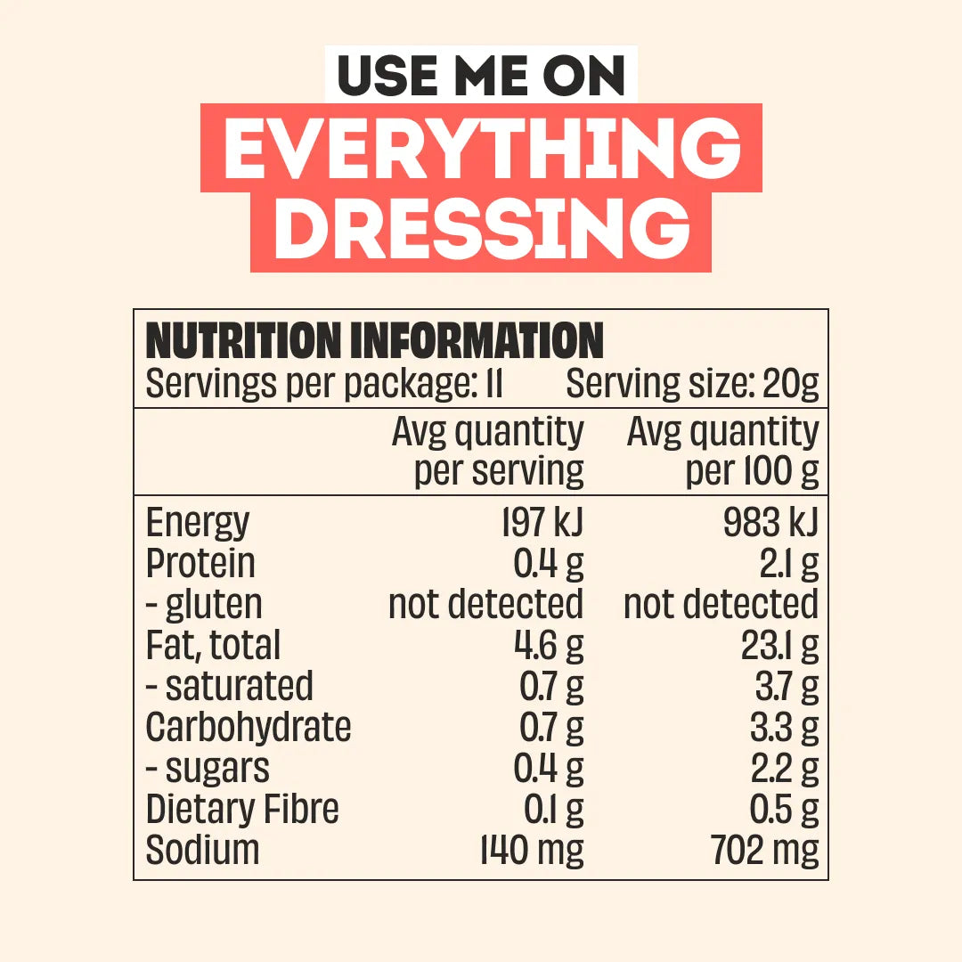 - 2 x EVERYTHING DRESSING: This dressing is your everyday all rounder. You can use it on any type of salad. Rumour has it, the recipe for this salad dressing has been passed down through the generations of one of our Mingle team members.