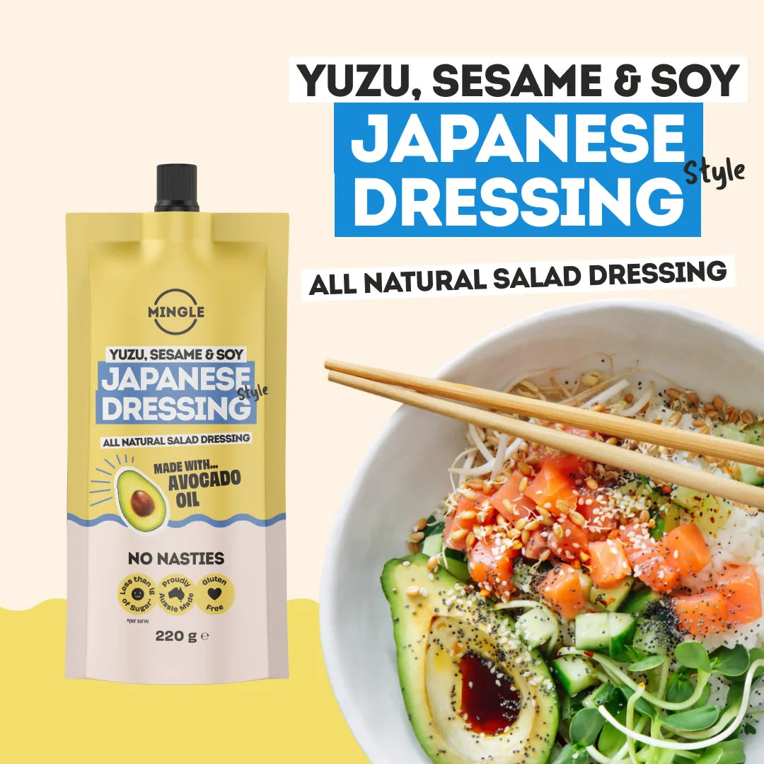 - 2 x JAPANESE DRESSING: A sweet, umami dressing with touches of yuzu and toasted sesame oil. If you just read that and didn't begin salivating, this might not be for you. This dressing also makes a great marinade for fish and chicken.