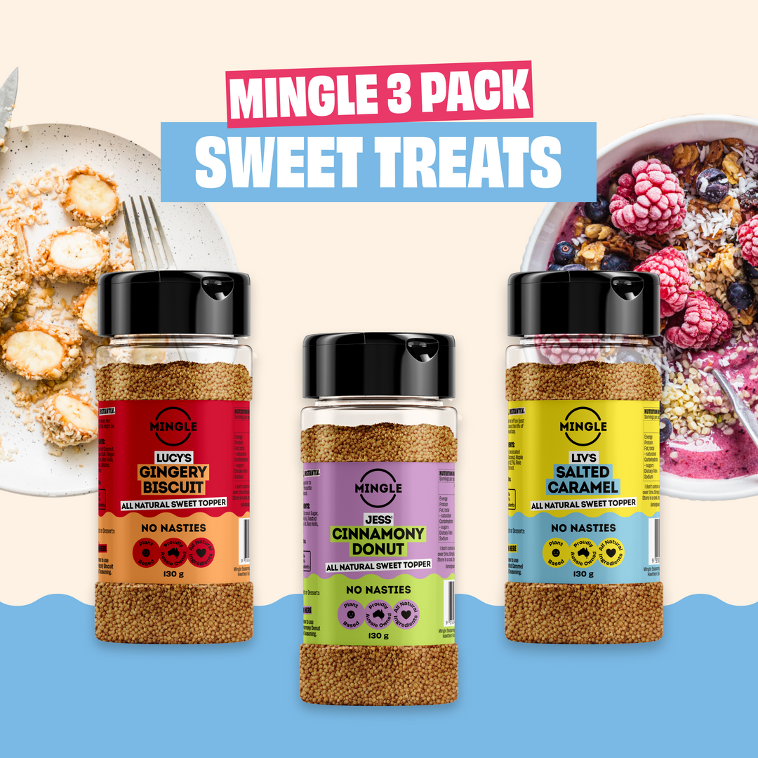 Mingle’s Sweet Topper Range allows you to sweeten your meals deliciously and healthily, perfect for yoghurt, ice cream, oats, and more. These all-natural, refined sugar-free, vegan-friendly blends come in exciting flavours like Apple Pie and Salted Caramel for guilt-free indulgence.